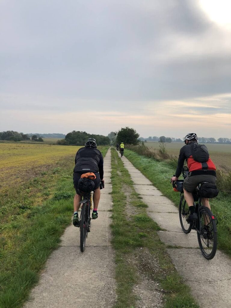 Die Strecke durch die „Steppe“ hat für uns beide, Jonathan und Markus, schon seit Kindesbeinen eine besondere Rolle: Als Grundschüler fuhren wir das erste mal auf dem Radweg zur Ostsee, später querfeld ein mit dem MTB. Lange war klar, dass wir auf den vielen Wegen durch dünnbesiedelte Gebiete eine echte Challenge organisieren wollten. 2021 war es so weit. Der große Radsport lag wegen der Pandemie brach, dafür fuhren plötzlich alle mit Biwacksack in den Wald. Im September fiel der Startschuss: Mit 33 Startern ging der erste Steppenwolf am Bernauer Steintor an den Start. Den Checkpoint auf der Insel erreichte noch ein Großteil, doch speziell die Trails auf dem Rückweg zogen vielen die Zähne. Am Ende von vier großartigen Tagen schafften es 11 Starter, den ersten Steppenwolf zu finishen.