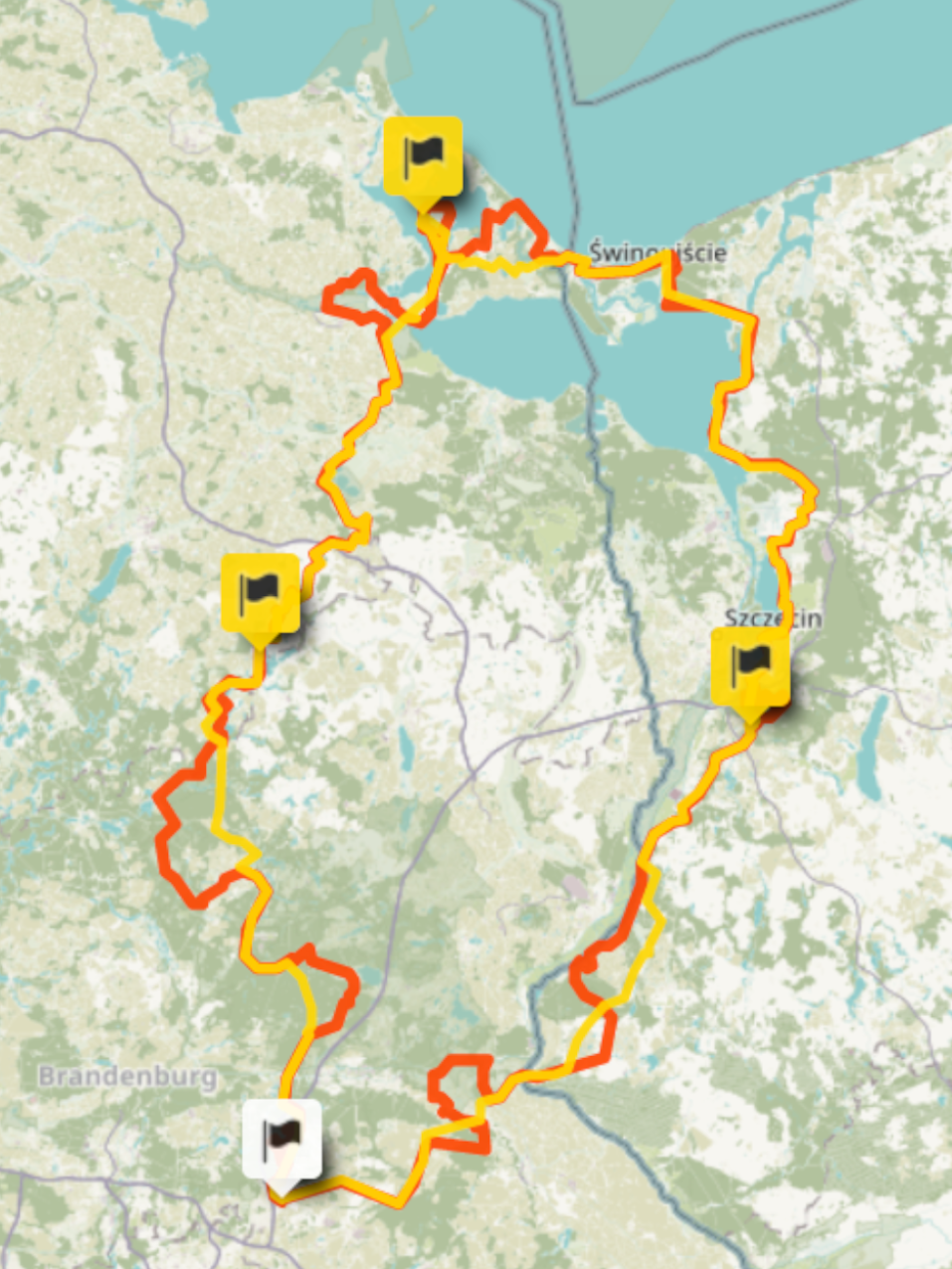 Der Graveltrack ist eine schöne Balance zwischen dem kürzesten Weg und den spannendsten Landschaften zwischen Berlin und Usedom. Euch erwartet auf rund 550-600 km eine abwechslungsreiche Mischung aus feinstem Schotter, langen Waldwegen, kleinen Plattenweg- und Asphaltabschnitten, kurzen Herausforderungen auf Pavé und ein paar Kilometern Flowtrail. Ganz anders als der Wildtrack ist er so gebaut, dass er eine Herausforderung ist, die auch viele Einsteiger*innen in der Vergangenheit bewältigen konnten.